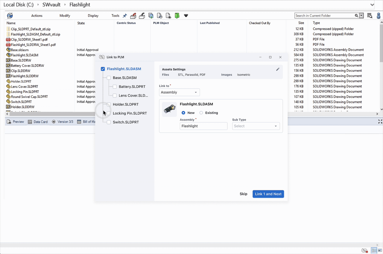 Engineers often submit multiple files for approval, so they should be able to batch link files to PLM