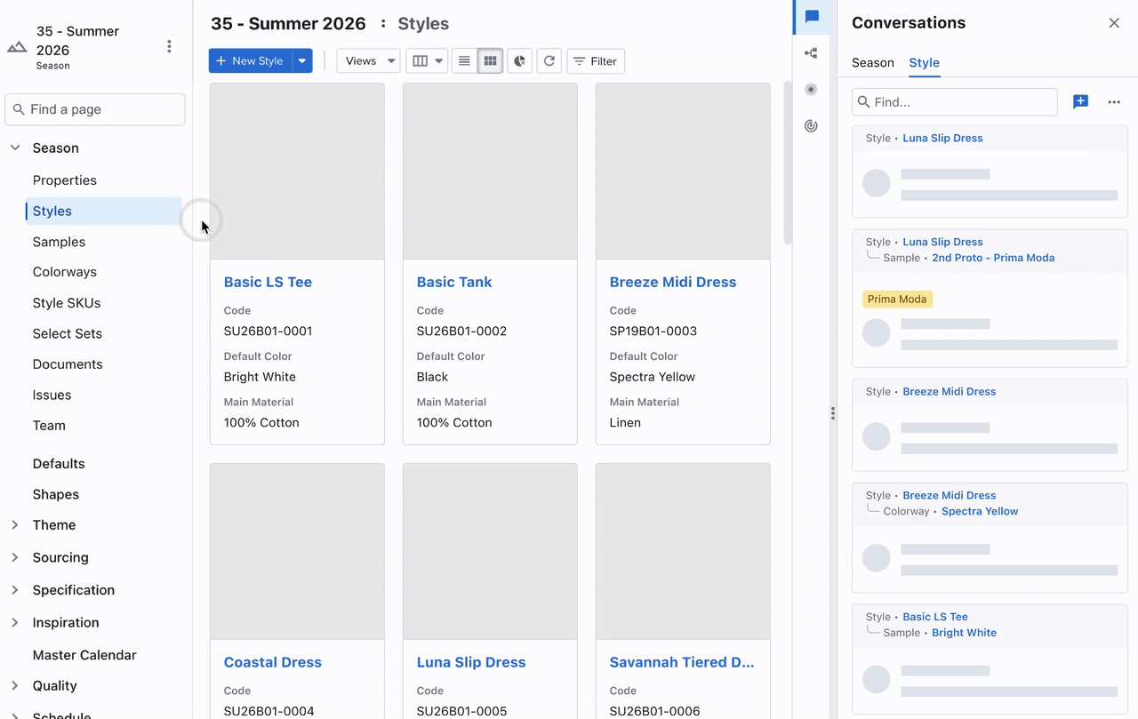 Users often work in a season-level collection to view all products, but have to open each item to see or start conversations.